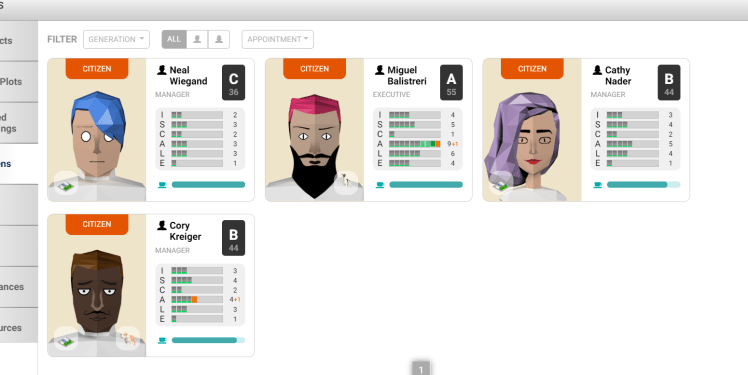 They all have their own points – as you can see in my citizens Miguel is the most accomplished. You can improve their skills by thing like pairing them with a pet. I’m not totally clear on how valuable these improvement measures are but we’ll see as we go.